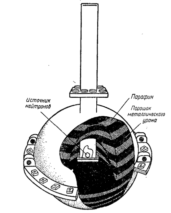 Когда работа была завершена, в контейнере разместили 6802 кубика общим весом около 25 тонн, покоившихся в парафиновых сотах весом чуть менее 4,5 тонны; толщина парафиновых перегородок между ячейками была равна двум сантиметрам. Перед сборкой контейнер установили в бетонированном бассейне, и, когда она была завершена, бассейн заполнили водой, служившей отражателем и защитой. В толще реактора были прорезаны колодцы, через которые вводили источник нейтронов и различные измерительные приборы.