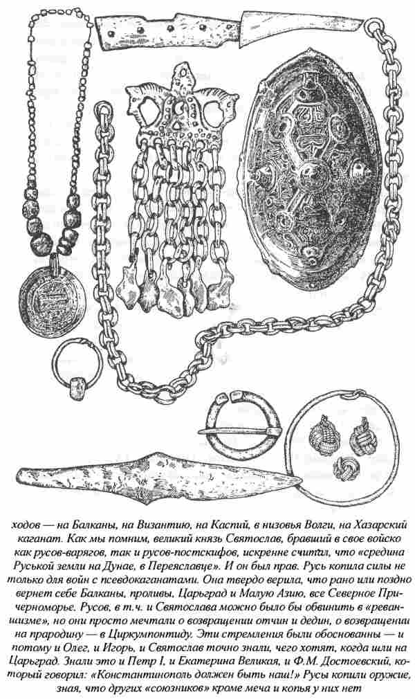 В слиянии родов они трансформировали общие традиции. Но и в этом случае первотрадиции суперэтноса, основные его признаки прослеживаются поразительно четко и повсеместно. Сами выселки, что естественно, разносили по Британии, Шотландии, Ирландии более однородные культуры. Так, в Ирландии мегалитические, камерно-дольменные гробницы прослеживаются вплоть до железного века. Один из ирландских курганов сохранился и поныне, это курган в Нью-Грендж высотой 13 метров, диаметром 60 метров. Во многих могильниках-раскопах на островах найдены предметы со спиральным и ромбическим узором, характерными символами русов. Погребальный инвентарь курганов подтверждает, что мы имеем дело с русами-мегалитниками.