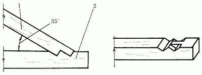 В том случае, если требуется усиленное крепление стропила, целесообразно использовать двойной зуб (рис. 41).