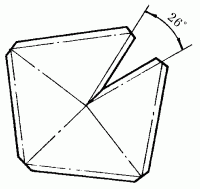 Для выполнения развертки пирамидального зонта (рис. 62) чертят квадрат заданного размера, противоположные углы соединяют диагоналями, образуя 4 треугольника. Одну из сторон треугольника разрезают, по линии разреза заготовку раздвигают на угол 25°, делают припуски на подгиб и на фальцевое соединение.
