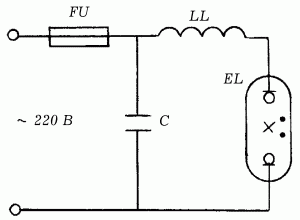 Однако конденсатор и дроссель необходимы: конденсатор включают параллельно с лампой, дроссель – последовательно.