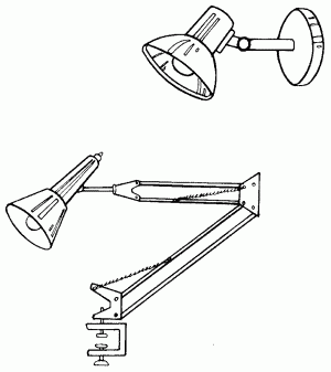 Среди ламп местного освещения большим спросом пользуются такие светильники, части которых могут передвигаться и изменять свое положение, в результате чего происходит изменение направления светового потока. Эти лампы очень удобны, так как в зависимости от настройки они могут распространять как прямой, так и отраженный свет (рис. 70).