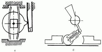 Рис. 10. Механизм выключателей (переключателей): а – кулачкового типа; б – тумблерного типа.