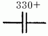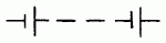 – конденсатор постоянной емкости в пикофарадах, номинальное значение которой указывают над графическим обозначением; после числа может стоять буквенный символ «мк», обозначающий «микрофарад»; полярность включения конденсатора обозначается значком «+», изображаемым у той обкладки, которая обозначает анод.
