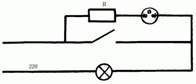 Рис. 13. Схема включения неоновой лампочки в цепь выключателя или розетки.