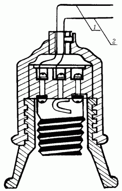 Рис. 14. Резьбовой патрон: 1 – нулевой провод; 2 – фазный провод.