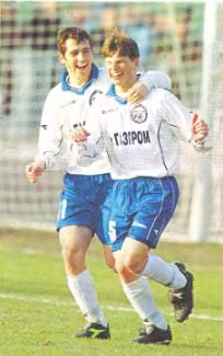 Благодаря Морозову, доверявшему молодым талантам, места в основном составе» Зенита» получили тинейджеры Андрей Аршавин (справа) и Александр Кержаков