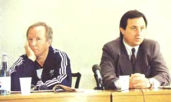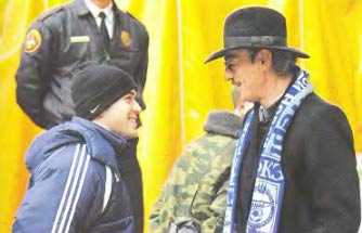 Бразды правления у Давыдова принял ветеран Юрий Морозов (справа), для которого работа в «Зените» 2000–2002 годов стала лебединой песней. На снимке — Морозов вместе со знаменитым актером, болельщиком питерцев Кириллом Лавровым