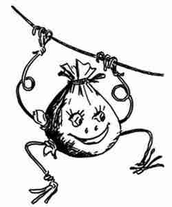 Витька. Желтый кузнечик обычных размеров, которого вывел из мячика от настольного тенниса в особом инкубаторе мальчик Лесь. (Дырчатая Луна).