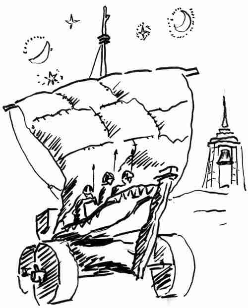 Песчаные лодки. Сухопутные парусные суда, которые по совету мальчика-землянина Фаддейки Сеткина (Фа-Дейка) стали строить марсианские жители – итты.