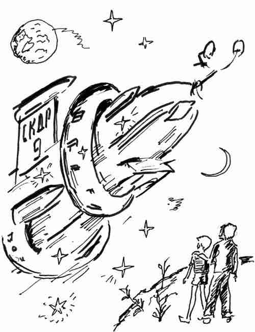 СКДР-9. Звездолет, на который во время дежурства астронавта Ярослава Родина невероятным способом проник десятилетний житель города Орехова Игнатик. Проник и увел Ярослава с собой, навстречу многим приключениям. (Голубятня на желтой поляне).