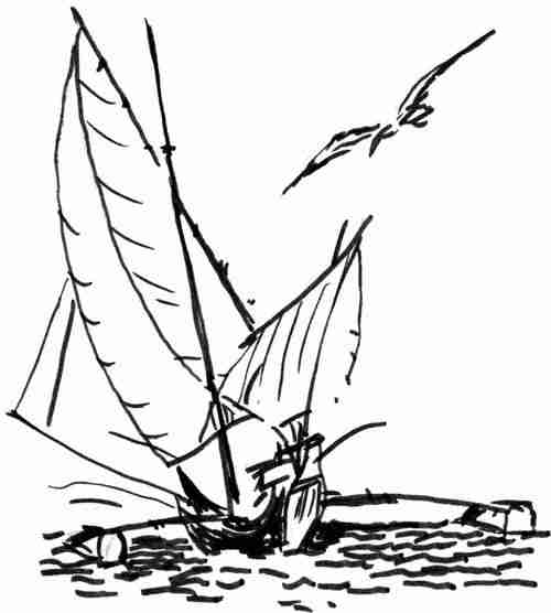 Упи-проа.Туземные парусные лодки жителей островного королевства Нуканука. На такой лодке Гвоздик и его друзья отправились на остров Акулья Челюсть, чтобы отыскать клад капитана Румба. (Портфель капитана Румба).