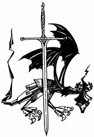 Меч с крестообразной рукоятью. Он сначала был обнаружен ребятами на заброшенном кладбище, а потом оказался в шкафу высоких напольных часов, стоявших в пустом таинственном доме,. Этим мечом, выручая своих друзей, дрался с железным змеем мальчик Сережка. (Далекие горнисты, трилогия «В ночь большого прилива»).
