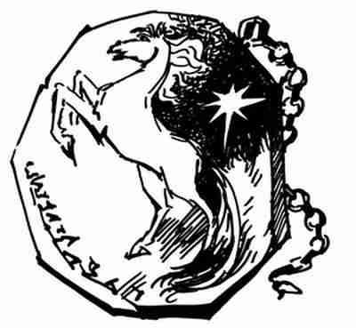Тарга. Медная, похожая на большую неровную монету, пластинка с искусно отчеканенным вздыбленным жеребцом, солнцем и непонятными значками На планете Марс она для всех народов была главным символом и знаком верховной власти. Обладатель тарги пользовался непререкаемым авторитетом и правом отдавать неоспоримые приказы. С помощью тарги Фаддейка Сеткин прекратил войну между иттами и тауринами. (Оранжевый портрет с крапинками).