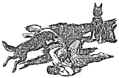 Зато Карай, наш горячий и бурный Карай, рванулся навстречу опасности и, позабыв все, чему его учили, злобно вцепился в пушистый ком своими клыками. А когда кавказская овчарка, испугавшись натиска, оставила на секунду свою жертву, Карай ударил снизу всем своим могучим, отлично тренированным телом, сбил белую собаку с ног, оседлал и стал грызть.