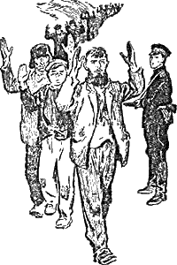 Конвоиры сзади, конвоиры спереди, конвоиры по бокам. Бандиты идут привычно — чуть наклонившись вперед, а руки за спиной, словно связаны веревкой…