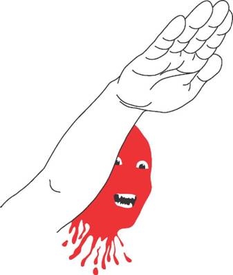 Это было в лагере движения «No Borders» (против расизма, в помощь иммигрантам) в Германии в городе с сильным нацистским движением… Лагерь длился 7 дней… В один из первых вечеров я чистил зубы, как вдруг мы заметили людей в углу лагеря… Была уже глубокая ночь, так что мы не поняли — полиция это или фашисты… Первой реакцией было — убежать, но потом мы сорганизовались и поняли, что нацистов — 20 человек… Всё выглядело очень пафосно: ночь, полнолуние, тени деревьев и нацистов… Нацистов даже нельзя было разглядеть, видны были только тени… Мы решили атаковать… Сначала мы боялись, что за деревьями есть ещё нацисты, но атаковать всё-таки решили… Когда мы подошли близко к ним, они побежали, так что удалось отоварить всего нескольких… Мы решили пропатрулировать прилегающую местность и увидели две машины… Мы подумали, что это машины наци и выбили у них стекла, но утром обнаружилось, что это машины полиции… Также утром пришел брат одного из атаковавших нас ночью нацистов… Он сказал, что его брат-нацист потерял в лагере ключи от дома и свои документы… Он говорил, что сам-то он не нацист, не может попасть домой и просил вернуть ключи… Но ключи ему никто не отдал…